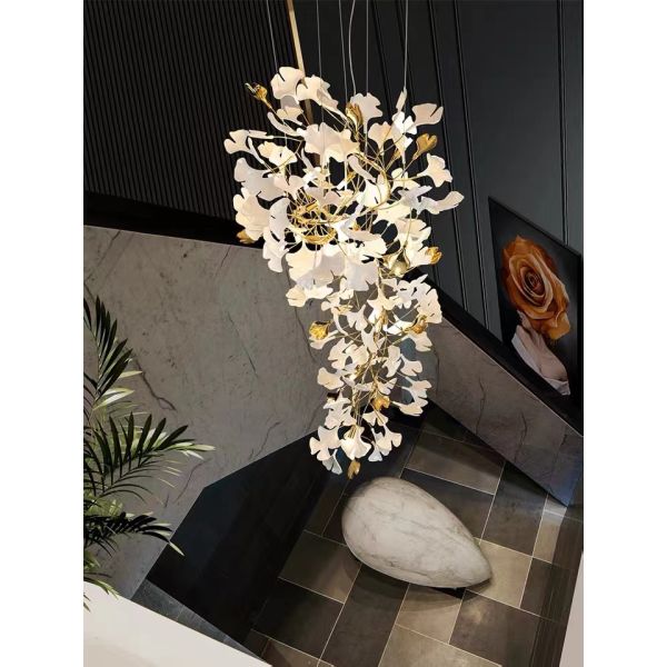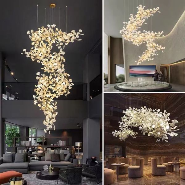 Restaurant Projects Large Custom Made Lamp White Ceramic Flower Pendant Light Leaf Chandelier Images |